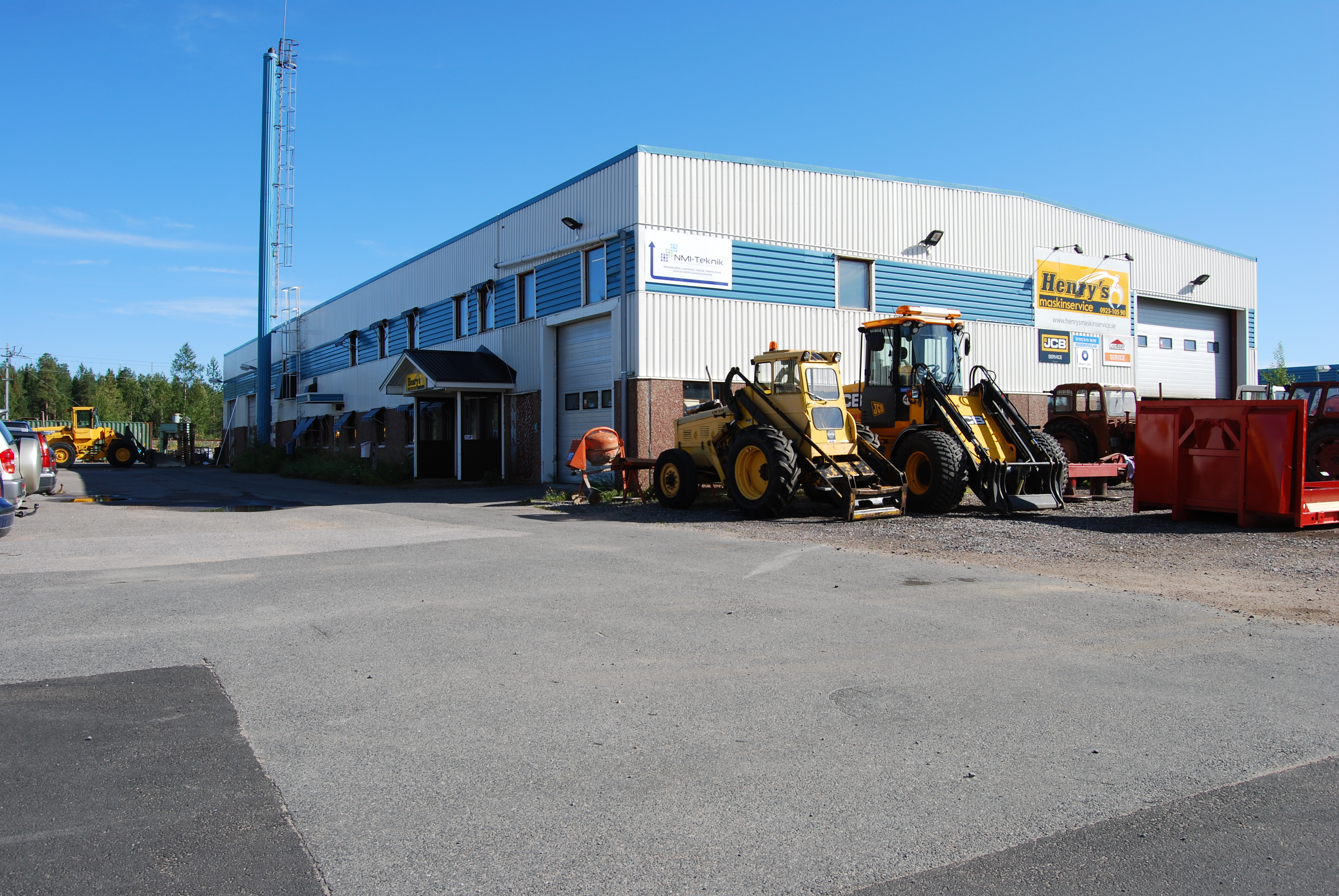 Industrilokal med två större portar samt traverser.