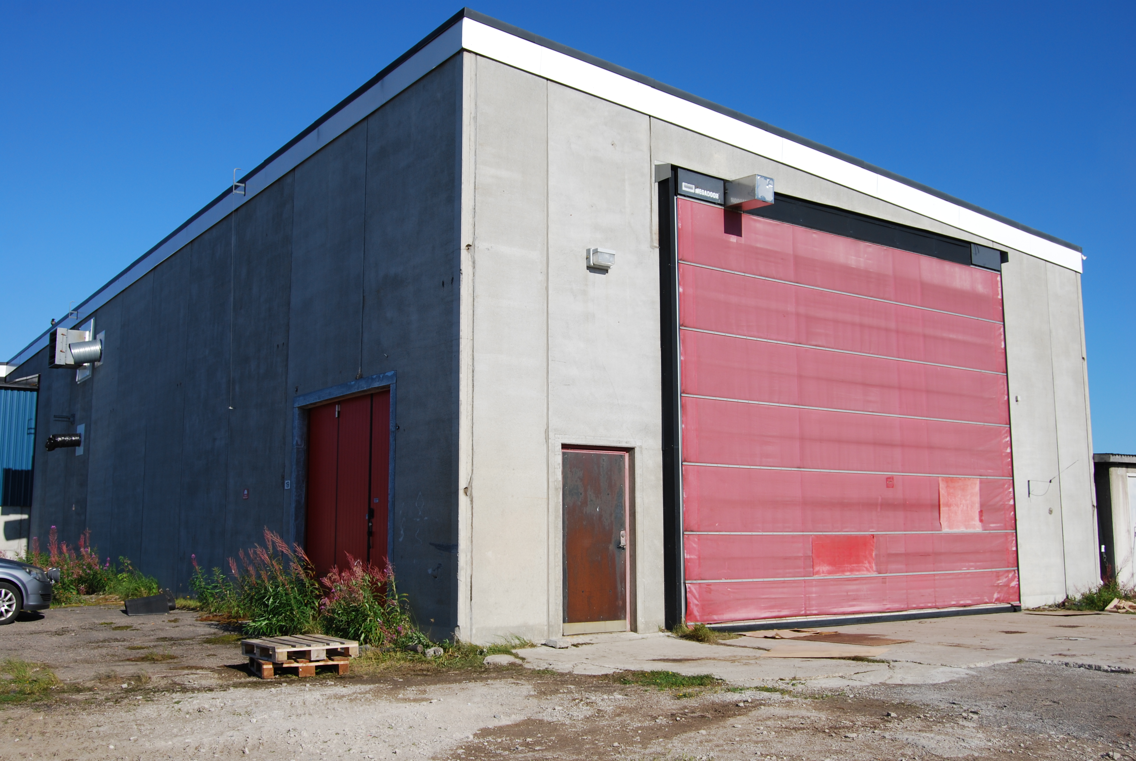 Industrilokal med fler portar och stora ytor.